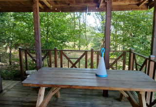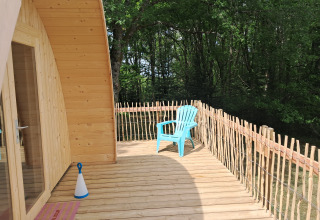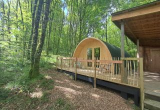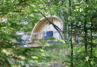 All'esterno ci sono un tavolo da picnic in legno per sei persone, due comode sedie e un'amaca robusta. Il POD si trova in un'area ampia di circa 400 m², circondata dal verde, che offre molta tranquillità, spazio e privacy.