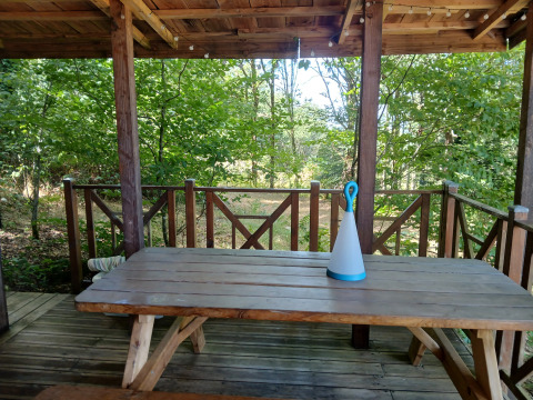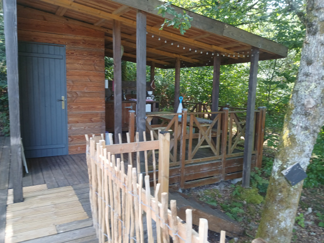 La sistemazione è completamente privata nel bosco, ma comunque vicina ai servizi centrali e accoglienti. Di notte è possibile sentire animali selvatici come cervi, cinghiali, volpi e gatti selvatici. Nell'area sono disseminati giochi naturali e l'edificio sanitario è vicino.