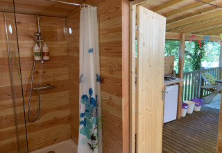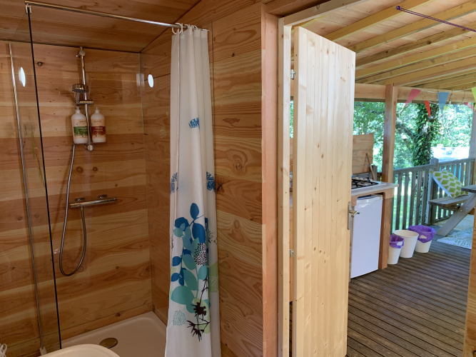 Il POD è dotato di bagno privato con WC, lavandino e comoda doccia a filo pavimento.