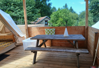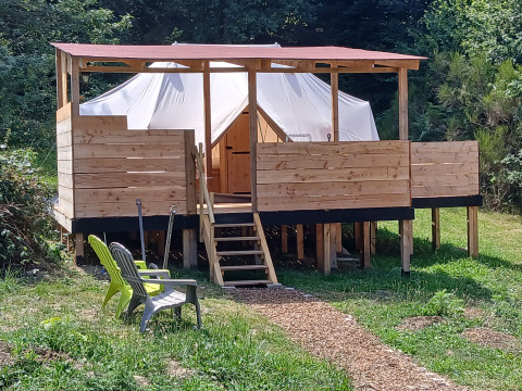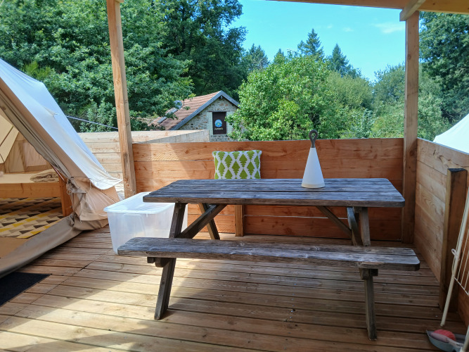 La tenda si trova a circa 200 metri dalla reception e dalla piscina. I servizi igienici privati si trovano a breve distanza nel gîte. All'interno del parco troverai varie attrezzature da gioco naturali. Junora è un campeggio senza fumo e senza auto; i cani non sono ammessi. Fuochi aperti vicino alle tende non sono permessi, ma è presente un'area centrale per fuoco e barbecue.