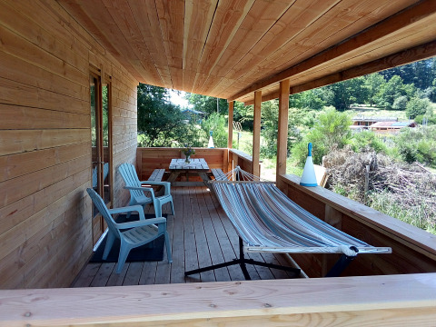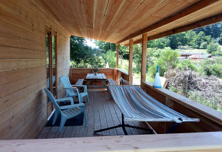 All'esterno si può godere di un’ampia terrazza coperta di 19 m², un grande tavolo da picnic e un’amaca comoda, su un ampio lotto di almeno 400 m², immerso nella natura.