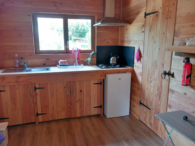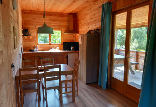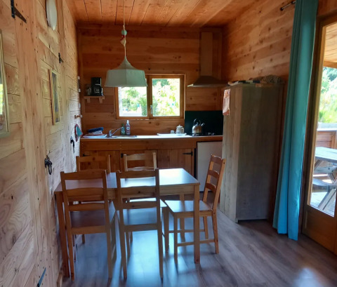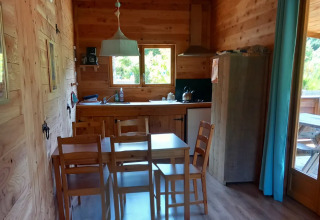 La cucina completamente attrezzata dispone di un piano cottura a gas a 4 fuochi e biancheria da cucina. Lo chalet è completamente autosufficiente, con elettricità tramite pannelli solari e acqua calda tramite un boiler solare.
