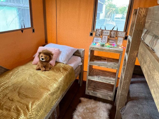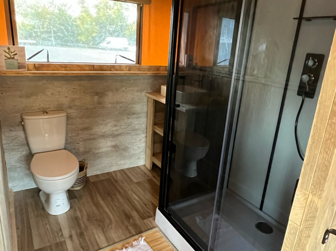 La terrazza coperta di 15 m² dispone di mobili da giardino. È possibile parcheggiare direttamente presso l’alloggio. Gli animali domestici sono ammessi secondo determinate condizioni. Questo lodge unisce comfort a un'esperienza di glamping naturale per tutta la famiglia.