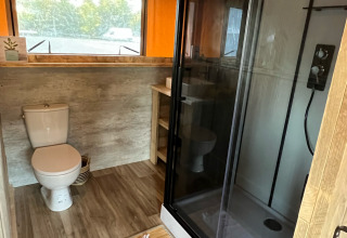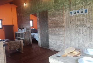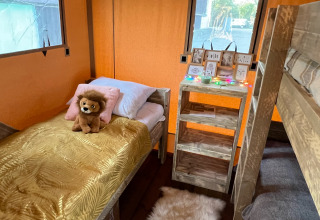La Luxury Lodge 40 è un alloggio confortevole per famiglie che amano la natura. Il lodge di 55 m² si trova in una parte tranquilla del campeggio, immerso nei boschi. Il lodge è adatto per un massimo di cinque persone ed è completamente non fumatori. Ci sono due camere da letto: una con un letto matrimoniale e una cameretta per bambini con un letto a castello e un letto singolo. La cucina è completamente attrezzata con piastre di cottura, frigorifero, microonde e una macchina da caffè Senseo. Acqua calda e fredda sono disponibili. C'è un bagno privato per un comfort e una privacy extra.