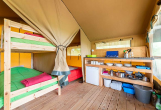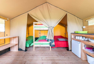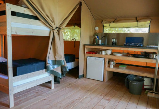 La Baroudeur Tent è composta da due camere da letto, una zona soggiorno con un piccolo angolo cottura (fornello, frigorifero e utensili da cucina). Sul posto troverai una piccola lampada da campeggio per l’illuminazione quotidiana.