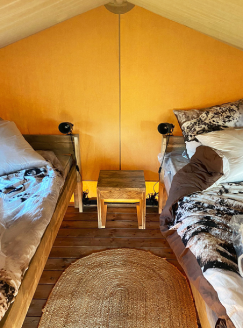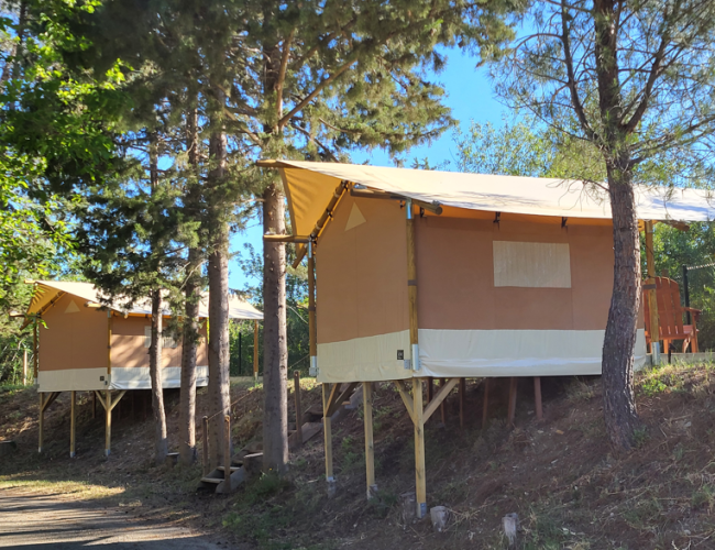 Séjour effectué le 7 août 2025 Le logement ne correspondait ni aux photos, ni à la description du site et de notre réservation : de grande tente avec lit double et kitchenette, nous sommes tombés sur une petite tente sans électricité avec deux lits simples aux matelas en plastique. En effet : les photos de la réservation montraient les tentes PREMIUMS bien que la réservation était pour les tentes simples ! Je qualifierai cela de publicité fallacieuse, pour ne pas dire mensongère. La "cuisine commune" est un espace comprenant exactement deux plaques de cuisson, un frigo, un micro-ondes et quelques ustensiles (pour l'entièreté du camping). La piscine non surveillée, petite et globalement décevante au vu de la place qu'elle prend dans la présentation internet du camping. Les seuls éléments agréables étaient basiquement la rivière juste à côté (gratuite) et le bar qui fait des chouettes soirées juste à côté (pas relié au camping donc). En bref : cadre magnifique, mais les seuls bons éléments à proximité ne viennent pas du camping.