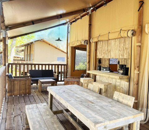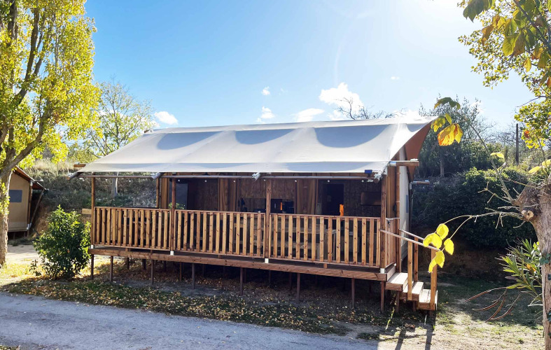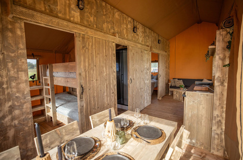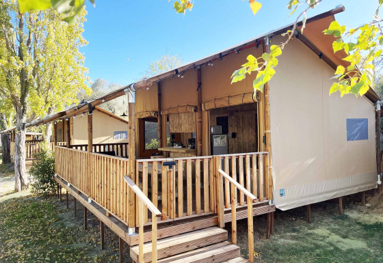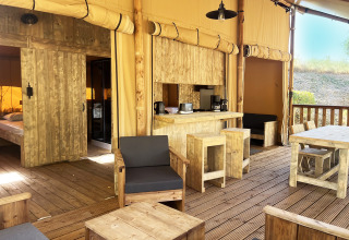 Dormi con stile, vivi all’aperto. Questo lodge combina la sensazione di libertà della tenda con il comfort di una casa vacanza moderna. Grazie all’aria condizionata reversibile, è fresco d’estate e accogliente d’inverno.