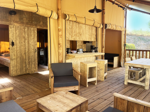 Il lodge offre un’accogliente lounge interna ed esterna, grazie alla transizione senza soluzione di continuità tra l’interno e la terrazza coperta. All’esterno puoi rilassarti comodamente sotto la terrazza coperta con lounge set e mobili da giardino.