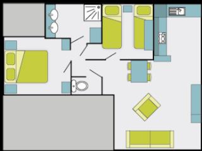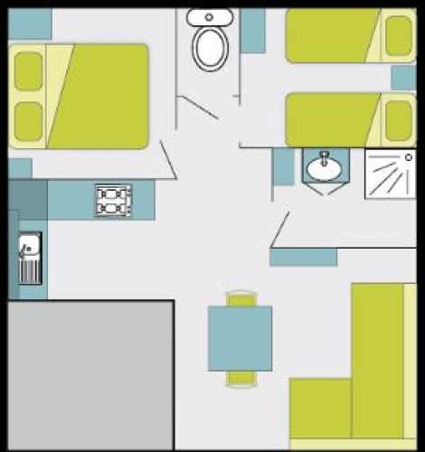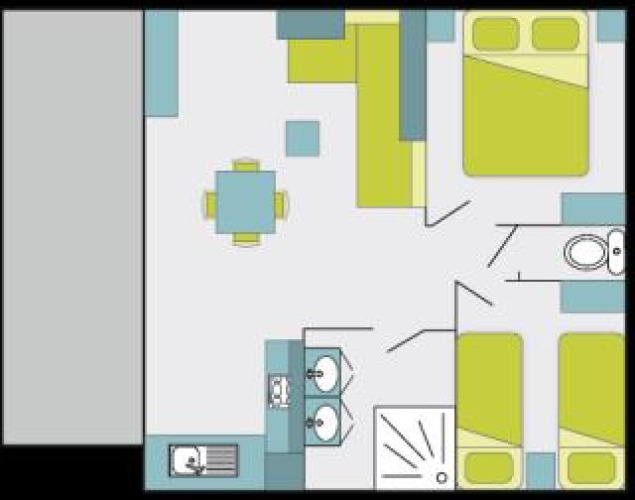 - Una camera da letto con un letto matrimoniale (140x190cm o 160x190cm, a seconda del modello). Una camera da letto con due letti singoli (80x190cm).