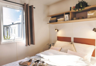 Situata nell’area Tribu, nella tranquilla foresta ai margini del campeggio. Queste sistemazioni Tribu sono composte da due case mobili poste una di fronte all’altra con uno spazio esterno condiviso, su una superficie di circa 300 m².