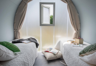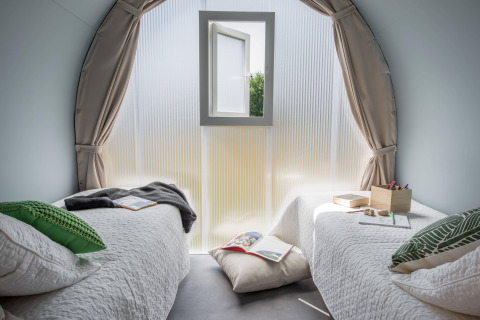 La Coco Sweet Lodge-tent è un concetto allo stesso tempo funzionale e accogliente, giocoso e conviviale. È un nuovo modo di vivere la tua vacanza in campeggio, particolarmente attraente e conveniente, adatto per un massimo di 4 persone. Questa sistemazione insolita, con forme arrotondate e rivestimento in tela, vicina ai servizi igienici e dotata di una porta che si può chiudere a chiave, ti conquisterà sicuramente.