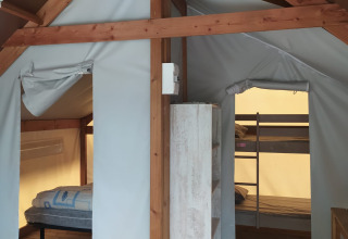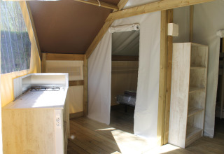 Vivi la vita all'aria aperta in una ecolodge su palafitte di 21 m², ideale per quattro persone. Goditi due camere da letto separate e una zona pranzo accogliente che si apre perfettamente su una terrazza parzialmente coperta. Questa nuova generazione di tende lodge è progettata per vivere a stretto contatto con la natura, senza rinunciare al comfort. Lo spazio è luminoso, aperto e arredato con atmosfera, perfetto per chi ama cucinare e mangiare insieme all'aperto. Non sono disponibili servizi igienici, così si mantiene intatto il fascino del campeggio. Per gli amanti degli animali, è benvenuto un cane di piccola taglia. Questa ecolodge combina semplicità con un'esperienza di glamping unica, nel cuore di un ambiente vivace dove relax e avventura si incontrano.