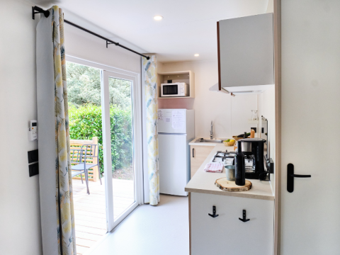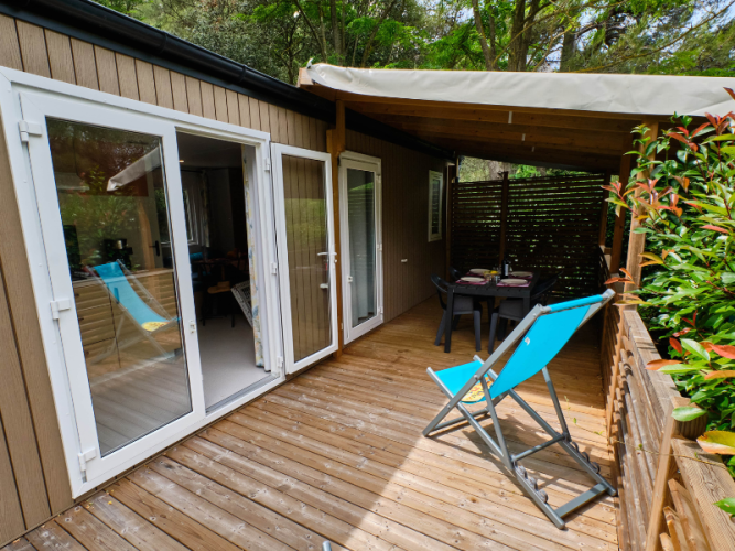 Scopri il lusso dello spazio nel Mobile Home Premium Large, una generosa residenza di 29 m² pensata per chi desidera più spazio per rilassarsi.