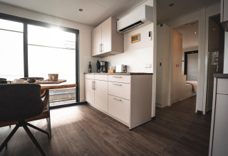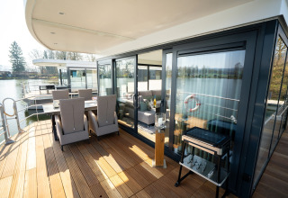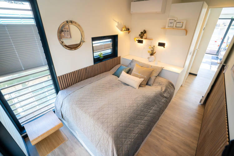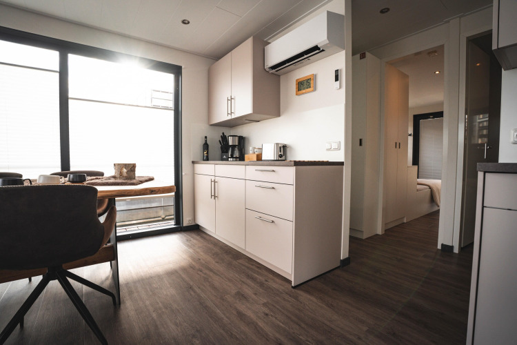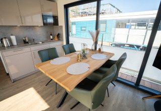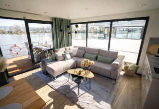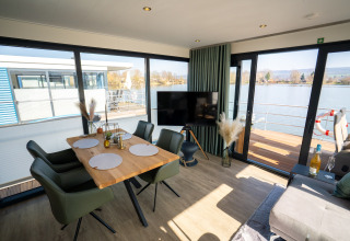 La casa galleggiante è saldamente ancorata, così puoi goderti la sensazione di vivere sulle onde senza dover mai guidare. All'interno troverai uno spazio abitativo luminoso e di alta qualità di 44 m², progettato in modo intelligente e completamente attrezzato. Ci sono due camere da letto separate, ciascuna con un comodo letto matrimoniale – perfette per una vacanza in famiglia o tra amici, oppure semplicemente per avere più spazio dove distendersi.