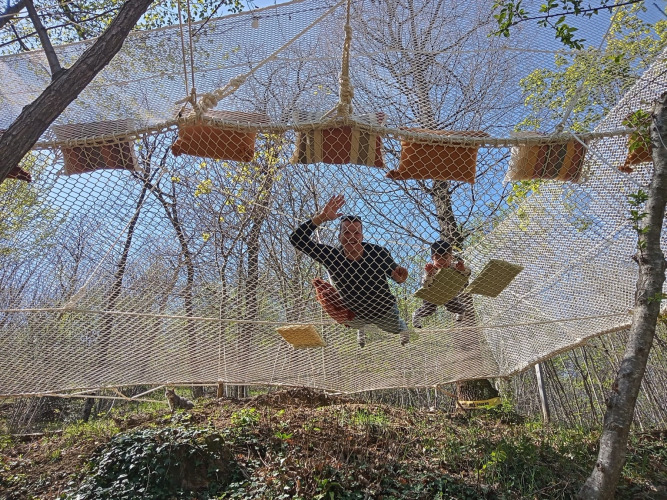 Gli ospiti possono rilassarsi completamente, scegliendo tra un posto al sole o l'ombra rinfrescante del bosco. Su un'amaca potrai goderti una piadina appena sfornata o un aperitivo rinfrescante, ideale per assaporare davvero il ritmo della vita all'aperto. Nel parco troverai anche una selezione di verdure di stagione, uova biologiche e altri prodotti locali come farina, pasta, vino, birre artigianali contadine e una vasta scelta di formaggi di pecora, capra e vacca, tutti prodotti con cura e 100% biologici.