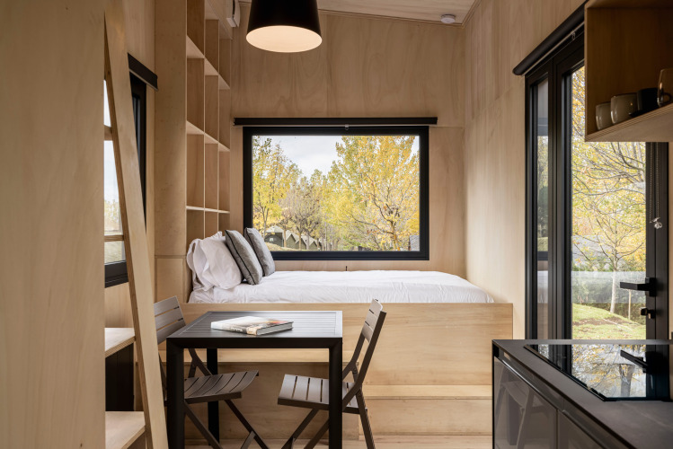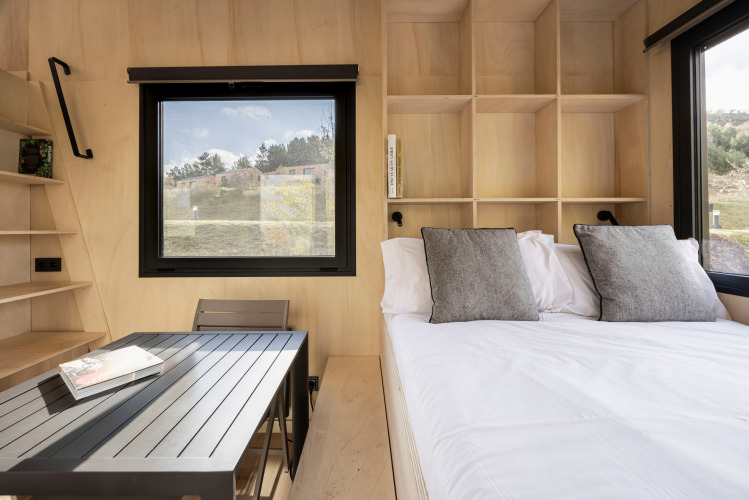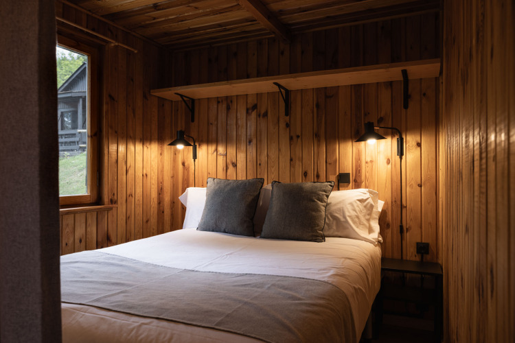 Per chi cerca tranquillità e semplicità, c'è la Crest Cabin di 16 m². Questa affascinante cabina minimalista dispone di un confortevole letto queen e trasmette puro relax e lusso, ideale per un weekend romantico nella natura.
