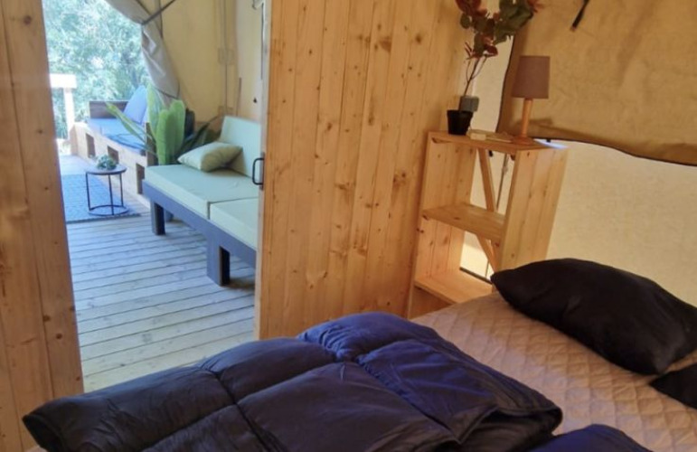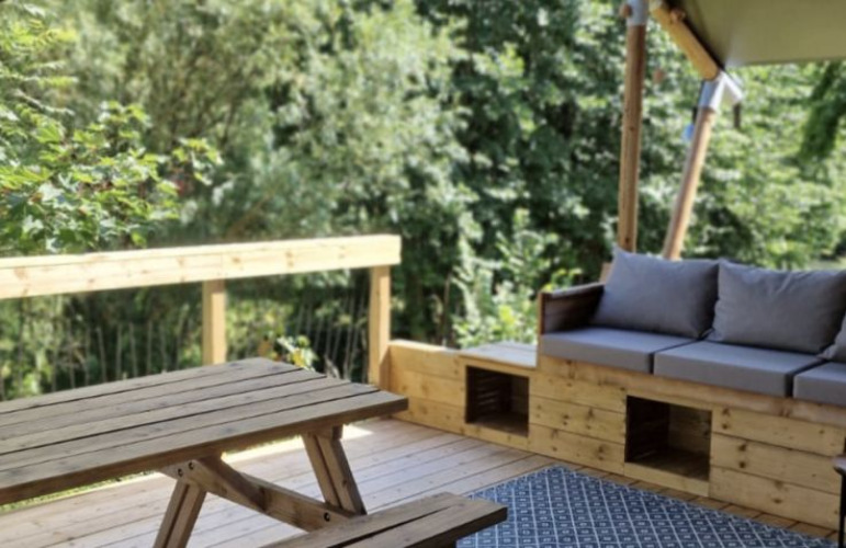 Una vacanza all'insegna dell'avventura e del comfort: la moderna tenda safari del Camping Neumühle combina l'esperienza della natura con ampie strutture. Perfetta per le famiglie e i gruppi che vogliono godere di un comfort eccezionale in campeggio.