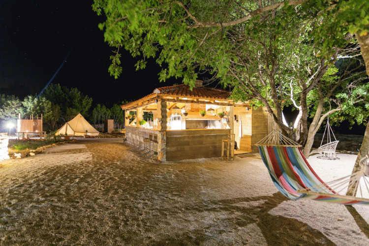 Servizi Potrai goderti la tua vacanza in completa tranquillità. Il campeggio piccolo e di lusso può ospitare al massimo 10 famiglie. Le tende sono posizionate strategicamente intorno alla piscina, dove puoi trovare un bar con barbecue e una zona lounge sotto gli alberi. Nono Ban ti offre tutto quello di cui hai bisogno: spazio per goderti in libertà la tranquillità della Croazia, mentre i bambini si divertono un mondo. In alta stagione vengono organizzate regolarmente diverse attività, come un BBQ collettivo o una visita al contadino locale. Per i più attivi c'è la possibilità di arrampicarsi sulle rocce o fare kayak in mare al mattino.