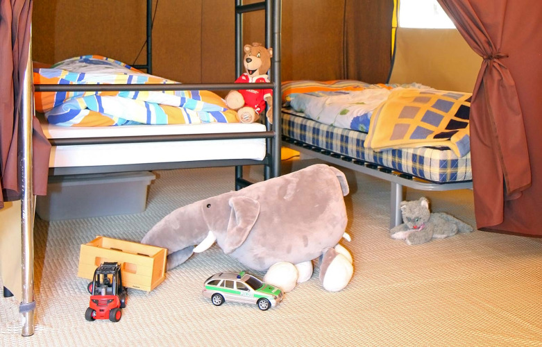 La capanna per escursionisti è ideale per 2 adulti e 2 bambini fino a 15 anni. La piccola e accogliente casetta in legno di 16 m³ è dotata di letti a castello, un angolo cottura, un tavolo e 4 sedie. Davanti alla sistemazione glamping si trova una terrazza coperta con mobili da giardino.