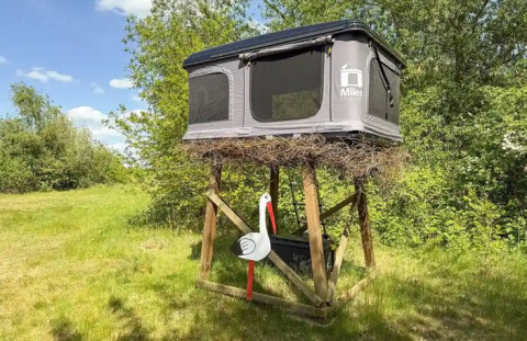 Trascorri la notte in un "nido di cicogna" fatto di rami e materiali naturali, creando un'atmosfera accogliente e calda.