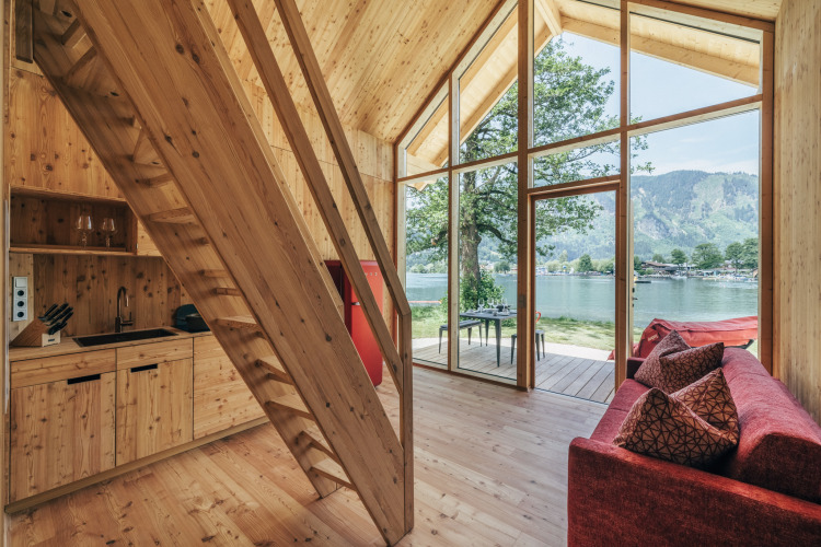 Vicino, più vicino, Ruby Red WOW View. Diretto sulla riva del lago, questi lodge sono il sogno di chi ama il bagno. Perché niente è più bello della vista libera sull’acqua. Dalla terrazza puoi ascoltare il tranquillo sciabordio del Millstätter See.