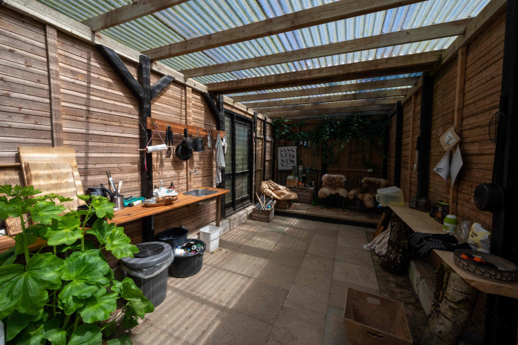 In questa glamping in Danimarca puoi rilassarti attorno al grande focolare, circondato da tronchi d'albero e tavolini, perfetto per lunghe serate sotto le stelle. Schermi parasole offrono riparo da vento e pioggia, così puoi sempre goderti l'aria aperta. Vivi il massimo relax con una doccia calda all'aperto o un bagno rinvigorente nella wilderness spa. Con il cielo limpido, il buio offre una vista mozzafiato sulle stelle, lontano dalle luci della città. Holmely è il luogo ideale dove natura e semplicità si completano a vicenda.