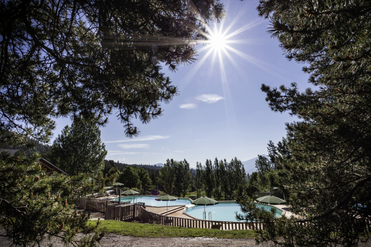 Una vacanza estiva in montagna? Al Huttopia Font-Romeu, una splendida glamping in Linguadoca-Rossiglione, potrai godere di una bellissima vista sui Pirenei dalla piscina riscaldata e dalle sdraio.