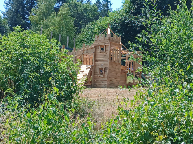 Tuffati nella piscina riscaldata di 11 x 5 metri, riscaldata anche tramite pannelli solari e perfettamente bilanciata grazie a un attento dosaggio del cloro. Scopri il nuovo muro d’acqua per giocare, due scivoli e rilassati su una delle sdraio. Ritirati nella biblioteca con libri per bambini e area scambio, oppure costruisci senza limiti al tavolo LEGO coperto. Libera la creatività nella sala polivalente ricreativa. All'esterno ti attendono aree gioco naturali, area d'acqua, campo da calcio, campo da pallavolo, campo da bocce, tavoli da ping pong e diversi giochi sparsi. Goditi una pausa con un frullato o un caffè fresco dal bar. Prenditi cura di te negli edifici sanitari moderni e sostenibili con pannelli solari, saponi ecologici e prodotti doccia vegetali. Tutto è progettato per il comfort, il piacere consapevole e la vita all’aria aperta senza pensieri.