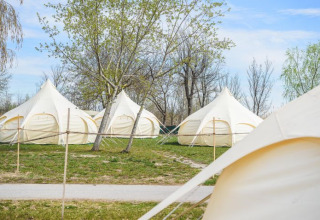 Al New Strand ti aspettano speciali tende glamping che combinano il meglio di entrambi i mondi, proprio sul lago di Neusiedl. Ogni tenda è un vero e proprio gioiello e offre l'altezza perfetta del soffitto per un comfort ottimale grazie al suo design accurato. È disponibile una macchina da caffè per parrucchieri, ma le capsule di caffè non sono incluse. Inoltre, il New Strand offre servizi igienici per tutti gli ospiti e un'area di servizio con lavatrice, asciugatrice e frigorifero ad uso comune. Gli ospiti possono anche arrivare con la propria barca o con una barca a vela a noleggio e ormeggiare al molo degli ospiti. Porta con te solo coperte e cuscini (materasso 1,40 x 2,00 m), il resto viene fornito.