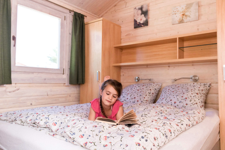 Le case mobili di tipo "Ocala" sono adatte per un massimo di 4 persone. Questi alloggi dispongono di una zona giorno con cucina integrata e danno accesso alla bellissima terrazza esterna. Ci sono due camere da letto, una con un letto matrimoniale e l'altra con due letti separati. C’è anche un bagno con doccia e WC. Nota che questa sistemazione non ammette animali e non è consentito fumare!