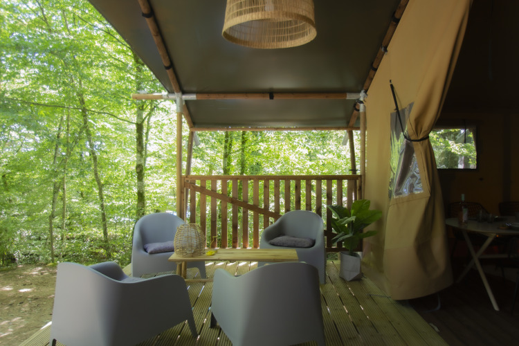 Presso Vieflow Lodge nella Dordogna potrai unire l’avventura del campeggio con il comfort di una sistemazione di lusso. Pernotta in una elegante lodge tent, completa di un letto comodo e servizi privati. Vivi l’aria aperta e dormi sotto un cielo stellato, circondato dalla natura del Sud della Francia – la perfetta esperienza di glamping nella Dordogna.