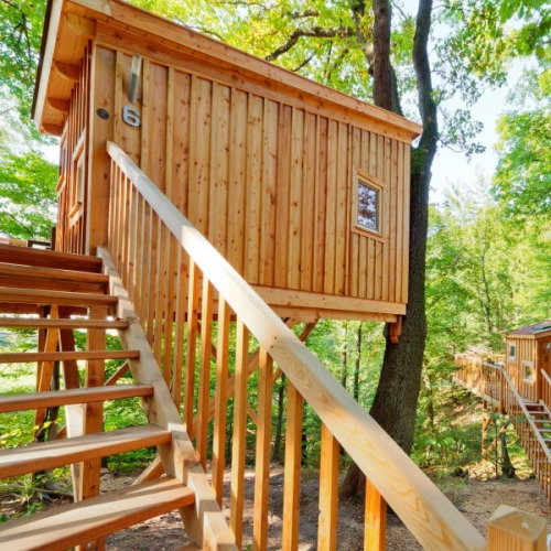 Ci sono cinque case sull’albero per quattro persone e una casa sull’albero per due persone, appositamente adattata per persone con disabilità. Questa casa sull’albero è accessibile tramite una piattaforma orizzontale invece delle scale. Tutte le case sull’albero si trovano a 5 metri d’altezza, tra gli alberi, e hanno una superficie abitabile di oltre 25m2, incluso il terrazzo. Gli interni luminosi e rustici sono moderni e accoglienti, e grazie alle grandi finestre e ai lucernari, potrai godere di molta luce naturale. Le case sull’albero sono dotate di un grande letto matrimoniale e di un letto a castello, oltre a un piccolo bagno con lavabo e wc. La casa sull’albero accessibile è dotata di due letti singoli e di un bagno con doccia. Grazie al riscaldamento elettrico e all’ottimo isolamento, potrai pernottare tutto l’anno nella casa sull’albero di questa glamping in Germania.