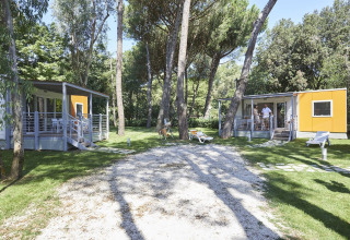 Lo chalet è ideale per 2-5 ospiti e dispone di due camere da letto confortevoli, una luminosa zona giorno con divano letto e un angolo cottura completamente attrezzato dove puoi facilmente preparare la colazione, uno spuntino o una cena semplice. L’aria condizionata (a pagamento) mantiene l’ambiente piacevolmente fresco nelle calde notti estive italiane. All’esterno, la tua terrazza privata con mobili da giardino e lettini invita a rallentare: gusta lunghi pasti all’aperto, leggi un libro all’ombra o concediti un pigro pisolino pomeridiano.