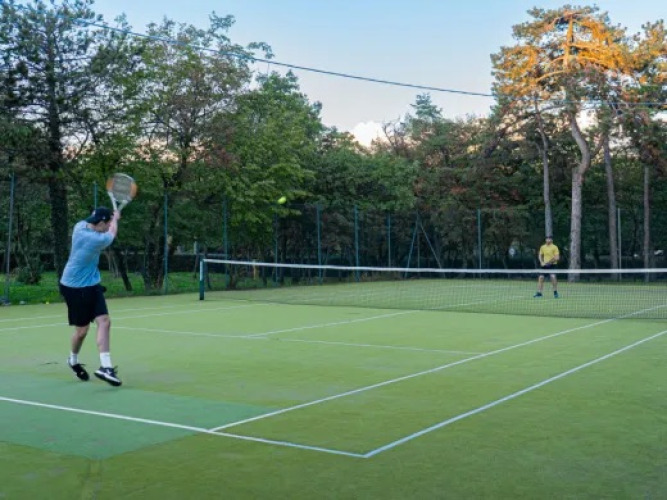 Affacciato sulla Baia di Sistiana, questo tranquillo campeggio sulla costa settentrionale dell’Adriatico combina natura, comfort e un tocco di fascino costiero. Fai un tuffo rinfrescante nella piscina, rilassati nella vasca idromassaggio o guarda i bambini giocare nella piscina per bambini. Goditi la vista panoramica dalla terrazza del ristorante oppure esplora l’acqua con un kayak o paddleboard. Voglia di cultura? La città storica di Trieste è a due passi—perfetta per una gita di un giorno piena di storie e attrazioni.
