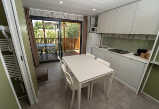 La Next XL Loggia è ideale per un soggiorno romantico in coppia, ma è perfetta anche per una vacanza rilassante in famiglia. C'è una camera da letto accogliente con un comodo letto matrimoniale. Inoltre, c'è una seconda camera con due letti singoli e un pratico letto pieghevole. L'ampio soggiorno con aria condizionata si collega perfettamente alla cucina completamente attrezzata, così potete cucinare insieme facilmente e godervi lunghi momenti a tavola. All'esterno potete rilassarvi sulla spaziosa terrazza: colazione sotto i primi raggi di sole, aperitivo la sera e concludere la giornata sotto le stelle.