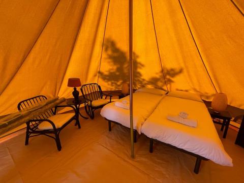 La Bell Tent è una tenda organizzata per 2 persone, che si adatta perfettamente all’atmosfera da campeggio.