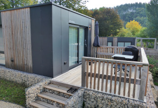 Goditi una fuga accogliente nella Tiny House 2! Questo chalet indipendente al piano terra è perfetto per due persone. L'accogliente zona giorno dispone di una zona pranzo e di una cucina compatta con piano cottura a induzione, frigorifero e macchina per il caffè. Nella camera da letto troverai un comodo letto matrimoniale, mentre il bagno è dotato di doccia, lavandino e wc. All'esterno ti aspetta un'accogliente terrazza con mobili da giardino. Puoi utilizzare gratuitamente la connessione Wi-Fi e c'è spazio per parcheggiare un'auto.