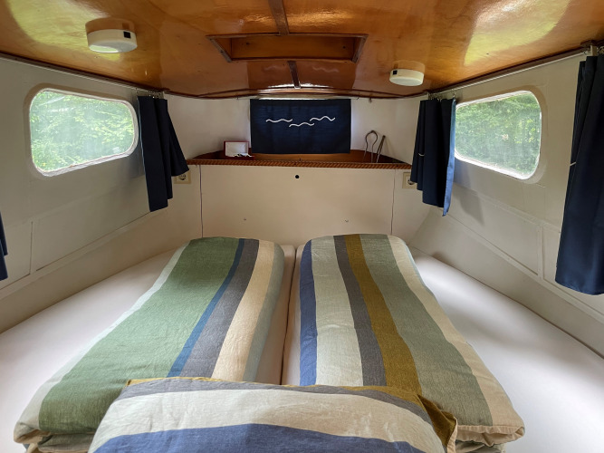 Facendo riferimento alla storia del Flevoland, al Buytenplaets Suydersee c'è una sistemazione speciale: una barca con cabina. Splendidamente disposta su un paesaggio ondulato che ricorda le onde impetuose dell'antico Zuiderzee. Ora sei comodamente sdraiato nella parte anteriore della barca.