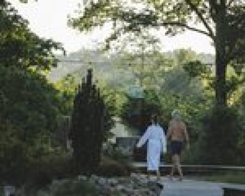 No, ma ci sono vasche idromassaggio a legna in tutto il sito.