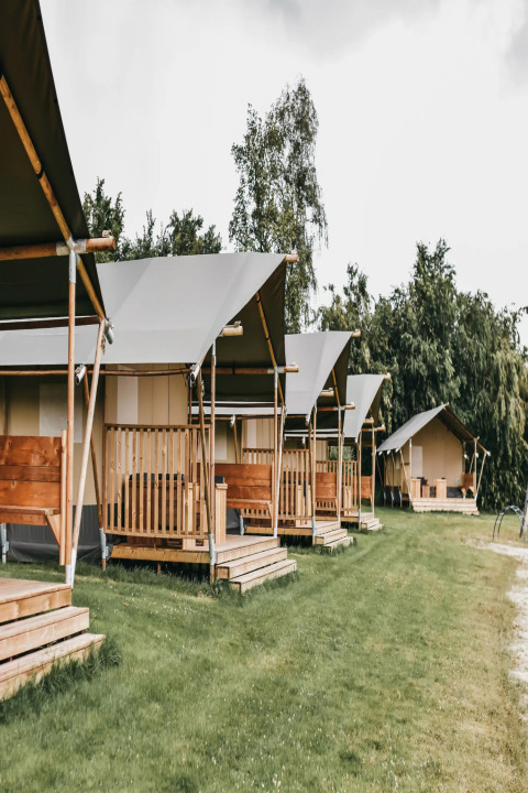 Nel parco troverai lago balneabile. Per un maggiore divertimento è disponibile uno scivolo d'acqua.C'è il Wi-Fi presso Safaritent met toilet?