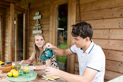 Anche i papà e le mamme non mancano di nulla, perché le tende per sei persone (o meglio casette vacanza) sono completamente arredate per una vera vacanza in campeggio. Dispongono di un letto matrimoniale, letto a castello (il boerderij huisje ha un letto trattore per un bambino invece di un letto a castello) e un soppalco per i bambini più grandi. Una cucina con dotazione completa, fornello a gas e un bagno privato.