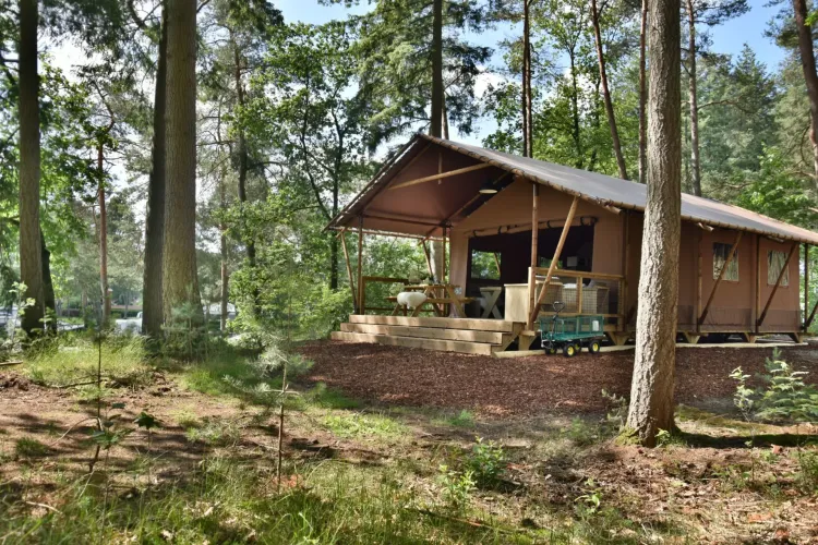 Ti piacciono il comfort e la convenienza, ma vuoi comunque stare all'aria aperta? In un luogo bellissimo nel mezzo della foresta del Veluwe e vicino alle strutture del Camping Samoza, puoi affittare una lussuosa Veluwe Lodge. In questa lussuosa e ampia tenda safari potrai goderti appieno la vita all'aria aperta combinata con il comfort necessario e un tocco di lusso! Nella Veluwe Lodge dormirai in un comodo letto, avrai a disposizione un bagno privato con una grande cabina doccia, una cucina completa con lavastoviglie e forno a microonde combinato e una bella terrazza spaziosa! Il lodge può essere aperto completamente sul davanti, permettendoti di godere appieno della vita all'aria aperta al Camping Samoza! I Lodge non sono accessibili in auto, poiché si trovano su una montagna in mezzo alla foresta. Si parcheggia l'auto in fondo alla montagna e poi si usa il carro per portare le proprie cose al Lodge.
