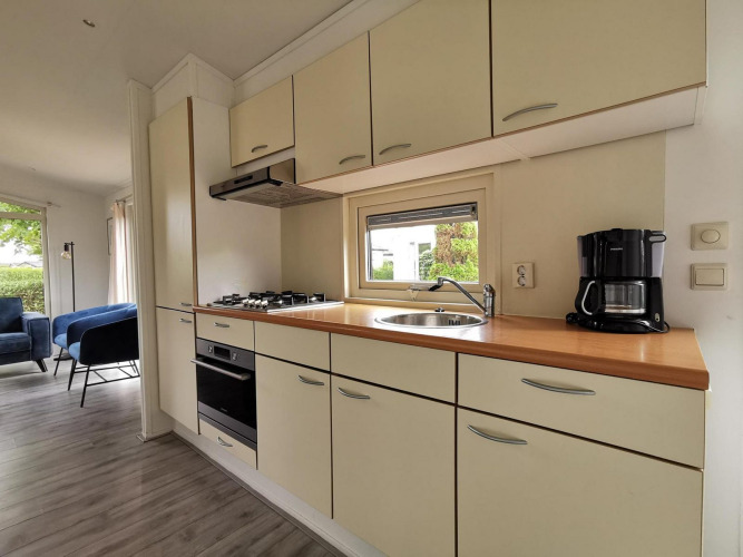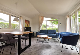 Il soggiorno luminoso e arioso è arredato con una zona salotto e una zona pranzo per 4 persone. Perfetto quando vuoi cenare insieme o giocare a un gioco da tavolo. Naturalmente, c'è anche una TV a schermo piatto così puoi guardare un film in completo relax dopo una splendida giornata di sole, mare e spiaggia. Nella cucina adiacente troverai tutto il necessario per mostrare le tue abilità culinarie, tra cui frigorifero, congelatore, forno a microonde e macchina da caffè.