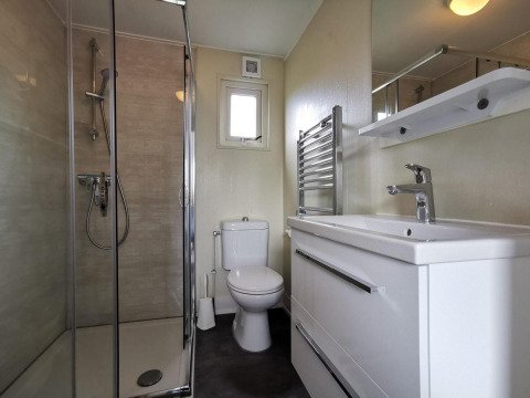 All'interno, la casa vacanze è completata da un bagno moderno con doccia, lavabo e WC.