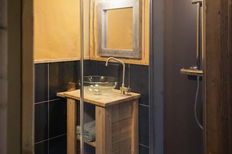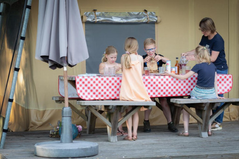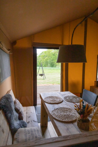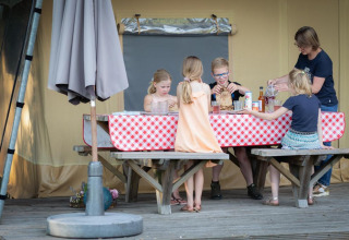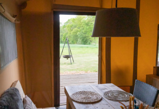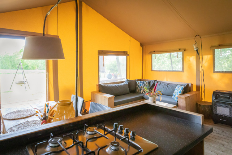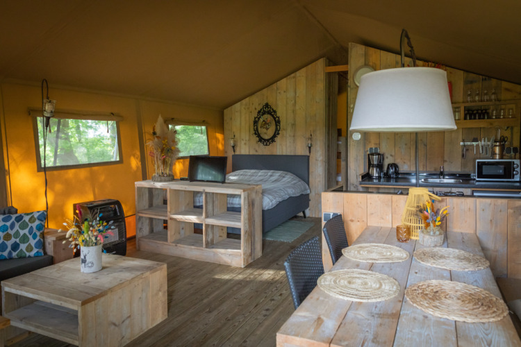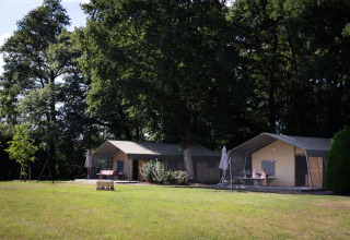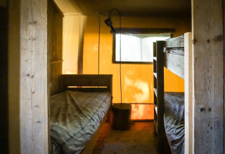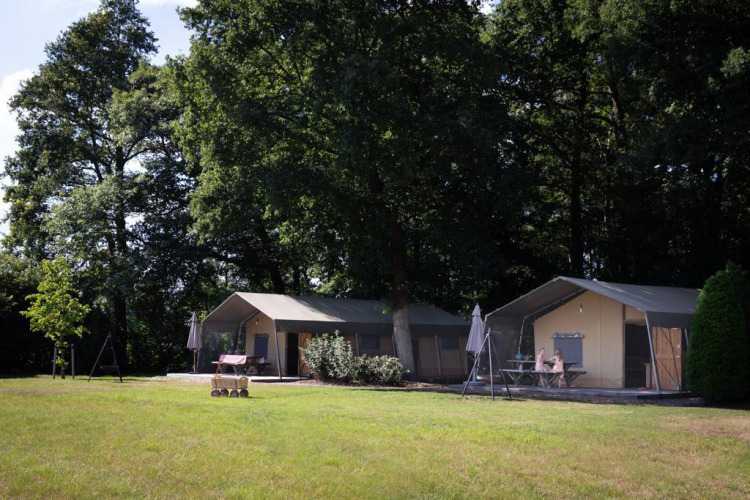 Ai margini dei prati e del bosco le tende safari sono disposte in modo spazioso. Qui sei immerso nella vita all'aperto, con vista sulla campagna e abbastanza spazio per giocare o semplicemente stare fuori. Le tende sono chiudibili e dotate di zanzariere, così puoi soggiornare comodamente in qualsiasi stagione.