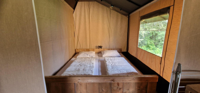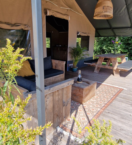 In safari presso Zomerlicht! Questa tenda glamping è adatta per un massimo di 6 persone, con 1 letto king size e 4 letti a castello. L'alloggio è inoltre dotato di una cucina con piano cottura, frigorifero, bollitore, macchina da caffè a filtro, utensili da cucina e posate. Accanto alla tenda si trova un bagno privato per voi. All'esterno puoi rilassarti sul divano lounge, giocare a un gioco sul tavolo da picnic o preparare un pasto estivo nella cucina esterna mobile. Tutto questo sotto un ampio tendalino.