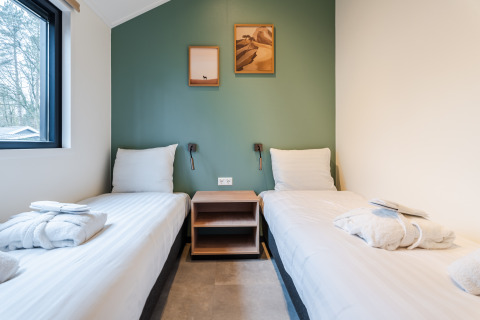 Avevamo una casa Heuvelrug per 6 persone. Una casa fantastica in un'ottima posizione nel parco. (Numero 166). Era molto pulita. I letti sono stati fatti all'arrivo. C'erano asciugamani e accappatoi con pantofole (per gli adulti). E c'erano alcune piccole sorprese: kit per la doccia, piccolo shampoo, detersivo per i piatti, strofinaccio e panno, piccola confezione di bevande (capsule di caffè, zucchero, latte in polvere, tè da provare). L'accesso alla barriera e l'apertura e la chiusura della porta d'ingresso tramite app hanno funzionato senza problemi. Anche il contatto via WhatsApp è avvenuto senza problemi e le risposte alle domande sono state rapide (in tedesco/inglese). Eravamo in quattro a viaggiare e la stanza con il letto a castello è davvero piccola, ma è stata del tutto sufficiente per noi. (Letto a castello). Avevamo anche una camera con due letti singoli e una camera con un letto matrimoniale. In ogni camera c'era un armadio piccolo o grande. Il bagno era molto moderno. Anche la cucina aveva tutto il necessario per sei giorni. Solo i cucchiaini erano molto piccoli e ci sarebbero potute essere un po' più di posate. Per il resto tutto era ottimo. Consiglio vivamente il parco (si può raggiungere Amsterdam, Efteling o Utrecht in tempi relativamente brevi). È tranquillo e la posizione con accesso diretto alla foresta è molto bella.