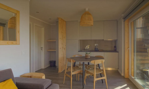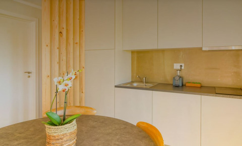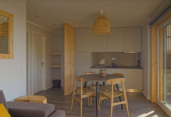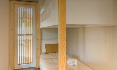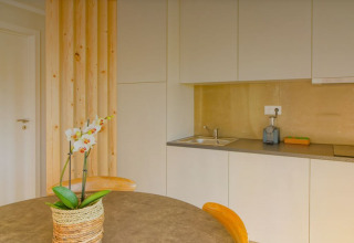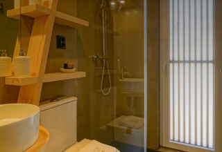 La Bungalow Comfort Family è un alloggio sostenibile e accogliente per quattro persone, progettato per le famiglie che desiderano combinare comfort e rispetto per la natura e l’ambiente. Il bungalow si trova in una zona tranquilla e verde e offre molta privacy. All’interno troverai una camera da letto con un letto queen-size e uno spazio separato con un letto a castello. La cucina attrezzata dispone di un frigorifero con congelatore, piano cottura in ceramica, microonde e macchina da caffè. Il bagno è completamente equipaggiato con doccia, asciugacapelli e prodotti per la cura personale. L’aria condizionata garantisce un clima interno piacevole. Biancheria da letto, asciugamani e un pacchetto di benvenuto sono inclusi. All’esterno puoi godere di una terrazza privata arredata con vista sul parco. È disponibile un posto auto privato. Gli animali domestici sono ammessi.