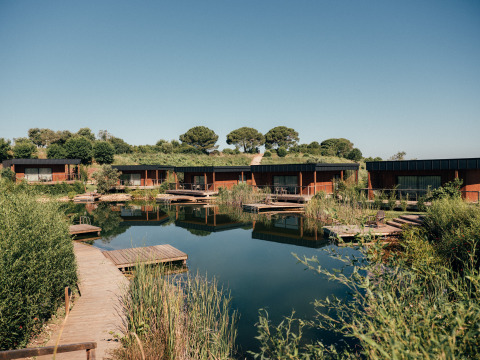 Goditi la pura tranquillità e il lusso naturale al Wecamp Reserva Alecrim, un eco-resort immerso tra foreste, lagune e la costa atlantica. Scegli tra eleganti sistemazioni glamping: dalle cupole alle tende safari, dove design, comfort e natura si uniscono armoniosamente. Vivi la comodità di servizi come piscine biologiche e a sfioro, una Sunset Lounge per tramonti mozzafiato e relax sui lettini, mentre i tuoi bambini si divertono nel Kids & Teens Club. Vivi la vera atmosfera dell’Alentejo con passeggiate nella natura, osservazione delle stelle o degustazioni di vini locali e olio d'oliva. Prenota il tuo soggiorno e scopri un mix unico di comfort, natura e avventura sulla costa sud del Portogallo.