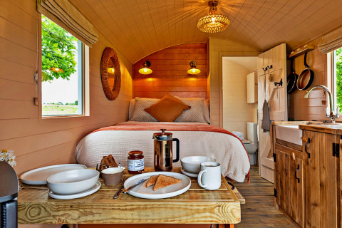 Die Angharad Shepherds Hut bietet eine großartige Balance zwischen Komfort und Outdoor-Abenteuer. Wir fühlten uns wie zu Hause und waren dennoch von Natur umgeben.